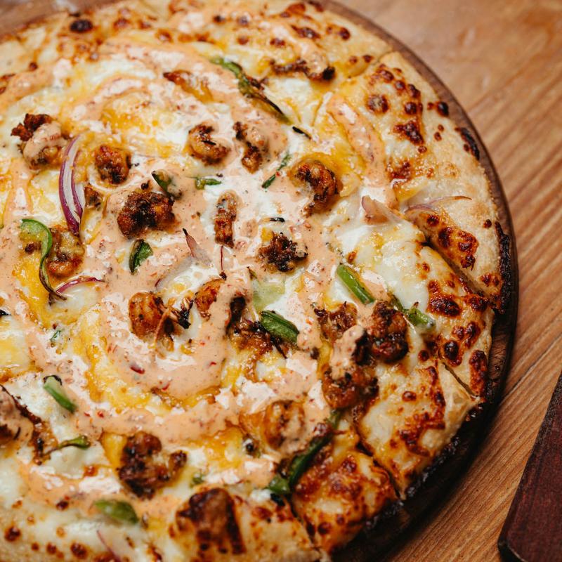 Small $16.00 | Large $22.00 | Extra Large $25.00 • Buffalo sauce, chicken, mozzarella, red onions, and ranch drizzle.