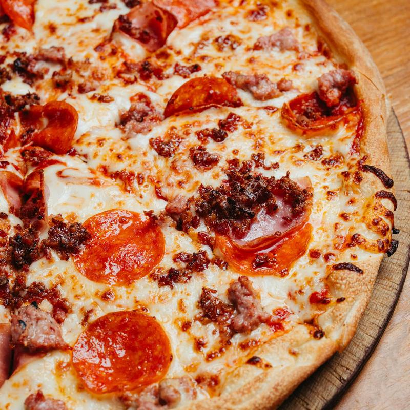 Small $17.00 | Large $25.00 | Extra Large $28.00 • Marinara, mozzarella, pepperoni, Italian sausage, Canadian bacon, and bacon bits.